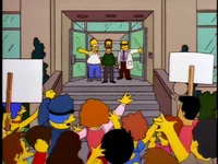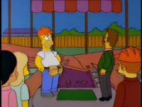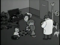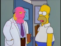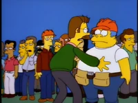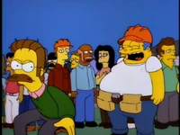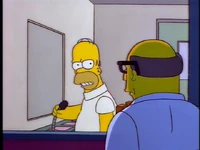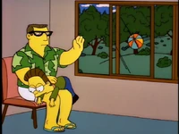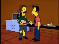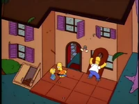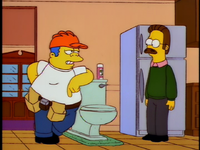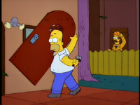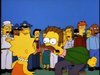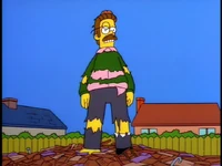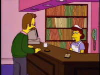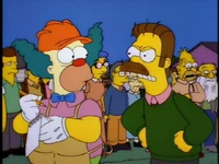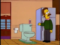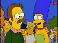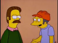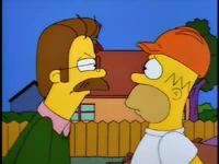 Dr. Foster enlists Homer to help Flanders learn how to appropriately express emotions, as he is the person who Flanders harbors the most resentful feelings towards. After several failed generic remarks, Homer coaxes Flanders to admit that he hates the post office and his beatnik parents. Upon hearing this, Dr. Foster declares Flanders cured and he is immediately released without his house being rebuilt.[1][2][3]