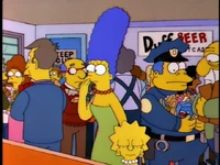 Simpson! Springfield's answer to a question NO ONE ASKED! [Wiggum laughs] What do we have here? The long, flabby arm of the law! The last case you got to the bottom of was a case of mallowmars!!