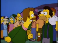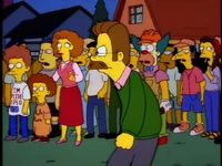 the third thing you said? [everyone backs away as Ned marches after Homer lastly]