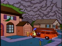 In midst of a quiet afternoon, the wind starts to pick up, which leads Lisa to find out that a hurricane is on the way. Lisa warns Homer, but he is skeptical since there isn't any record of a hurricane ever hitting Springfield. Lisa reminds her father that the records only go back to 1978, "when the Hall of Records was mysteriously blown away". The evening news confirms that 'Hurricane Barbara' is close, resulting in panicked citizens storming the Kwik-E-Mart and causing Homer to attempt to secure the Simpson home. The hurricane strikes and after a few treacherous hours, the storm ends and the family cautiously leaves the basement. Initially, they are thankful to see that their home is untouched and Marge comments that everything works out if one has a little faith. Meanwhile, next door Flanders emerges from a heap of rubble and sees that his house was destroyed, along with everything else he owned except the family gravestones.